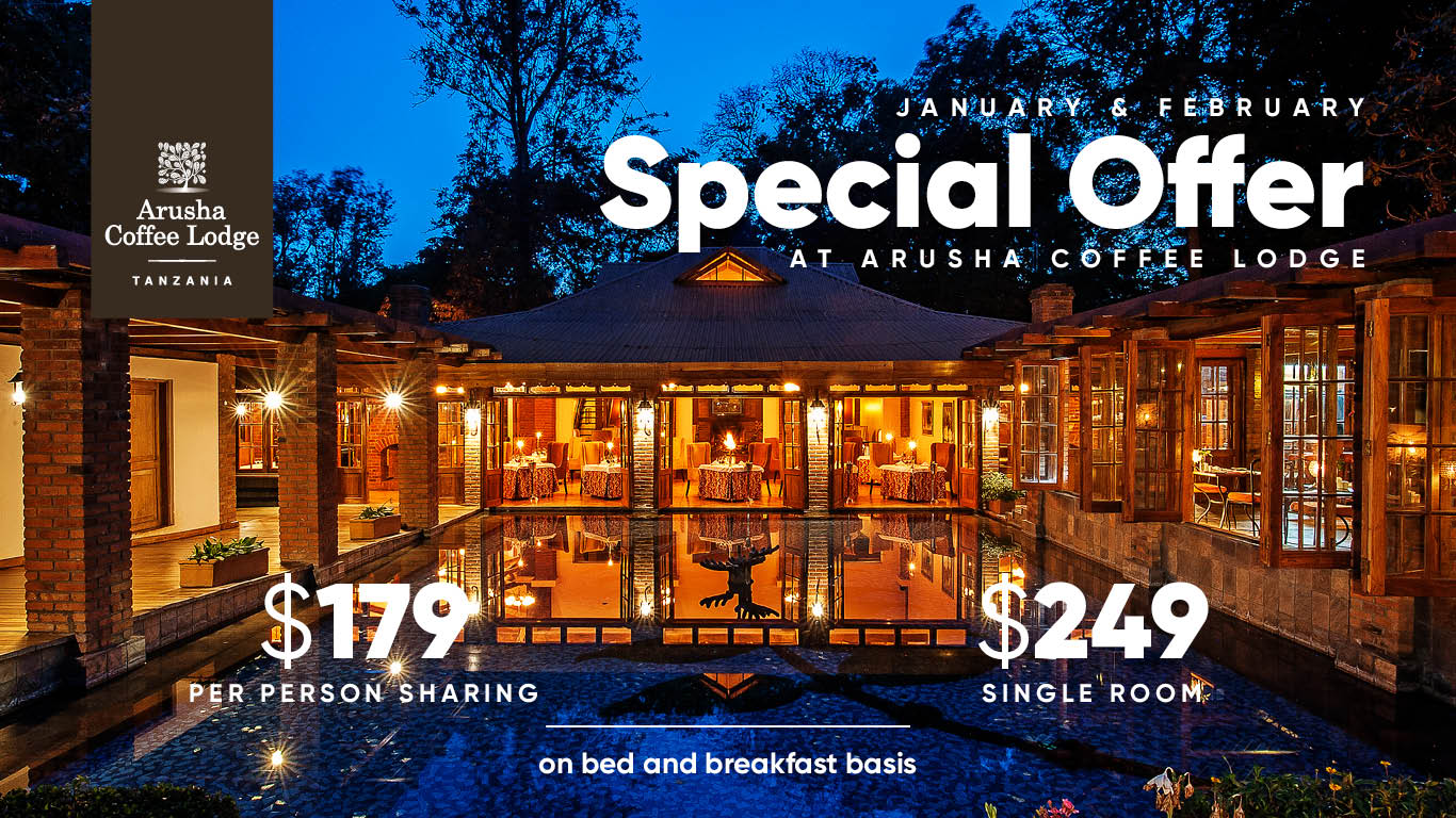 Elewana Arusha Coffee Lodge has good reason for guests to celebrate 2021’s arrival by offering increased savings between January 15 and February 28, 2021 with a special flash sale. Couples and solo travellers can take advantage of these special offers priced at $179/ person and $249/person respectively.